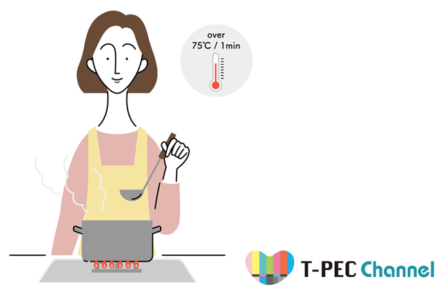・加熱するときは、「食品の中心部を75℃で1分間」を目安に十分加熱する。
