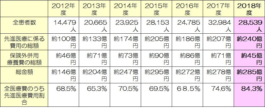 2018年度先進医療実績のまとめ