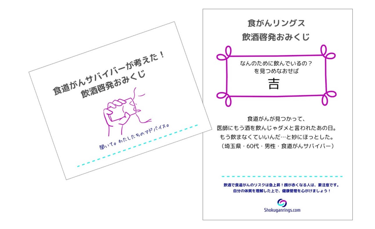 ◆楽しく学ぶ!食がんリングスとティーペックのコラボ企画「飲酒おみくじ」 きっかけは「食道がんと飲酒の関係を知ってほしい!」