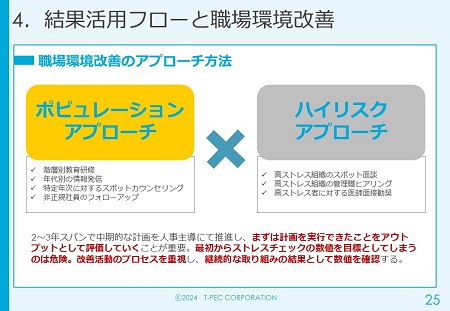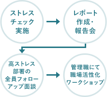 「部」や「課」といった組織単位で結果を集計し、アプローチ対象と具体的な施策の中身を決定します。現場の早期ケアと実態把握を目指します。