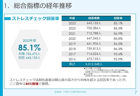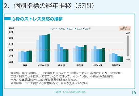 2009年より職業性ストレス簡易調査票を取り扱ってきたデータの蓄積により他の企業との比較が可能です。