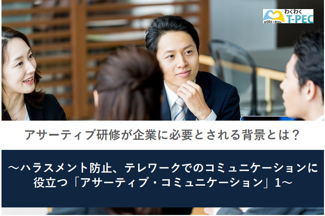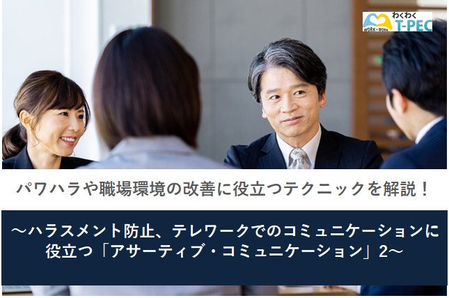 ティーペック研修講師で、数多くの企業でアサーティブ研修を行う船見敏子さん(株式会社ハピネスワーキング代表)に、パワーハラスメント(以下、パワハラ)やダイバーシティ、心理的安全性の面から注目される、アサーティブ・コミュニケーションについてインタビューを行いました。今回は、今後もますます増えていくテレワークの場で、すぐに使えるアサーティブ・コミュニケーションを教えていただきました。