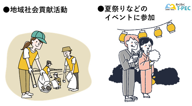 勤務時間中に地域の清掃活動等に参加することで、従業員が体を動かす機会になります。また、地域住民との交流をはじめ、地域活動に積極的な企業としてのアピールにもなります。