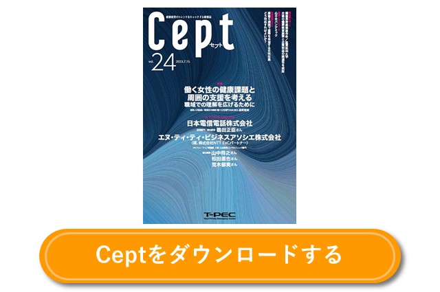 *Ceptは、ラテン語のcapere(つかむ)に由来しています。健康経営の最新情報やトレンドをキャッチし、未来・健康をつかむという意味を込めています。
