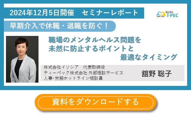 2024年12月5日、ティーペック株式会社では、職場のメンタルヘルス問題に関するオンラインセミナーを開催しました。