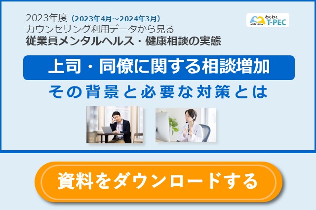 4位:2023年度 カウンセリング利用データから見る従業員メンタルヘルス・健康相談の実態 ~上司・同僚に関する相談増加、その背景と必要な対策とは~