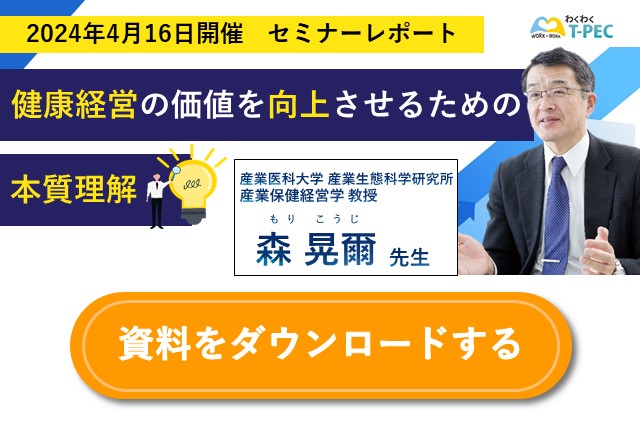 わくわくT-PECでは、今後も企業人事・労務、健康保険組合のご担当者様や、企業で働く従業員の方々に向けて、健康経営に関する情報や、『健康で、イキイキと働く』ためのヒントにつながるような情報を提供していきますので、ぜひ定期的にチェックください!