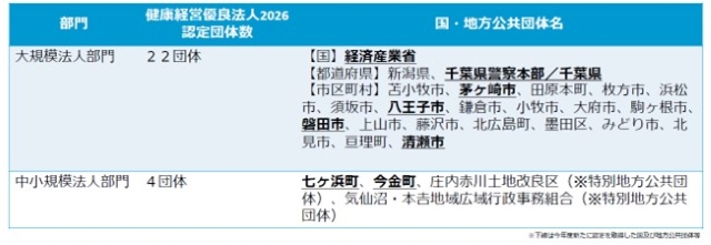 新たに、健康経営優良法人に認定された地方公共団体は8団体です。今後は、これらの先行事例を参考にしながら、地方公共団体においても健康経営の取組をさらに広げていくことが期待されます。